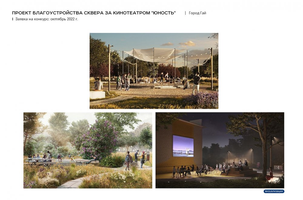 В случае победы, в Бугуруслане планируют обновить площадь по ул. Коммунистической. В Гае обновления требует сквер у гайского кинотеатра «Юность», а в Кувандыке будет благоустроен парк Федорова. Жители Орска для благоустройства выбрали территорию сквера имени Б. Хмельницкого, в Сорочинске же планируют сделать современным парк в микрорайоне «Озерки».