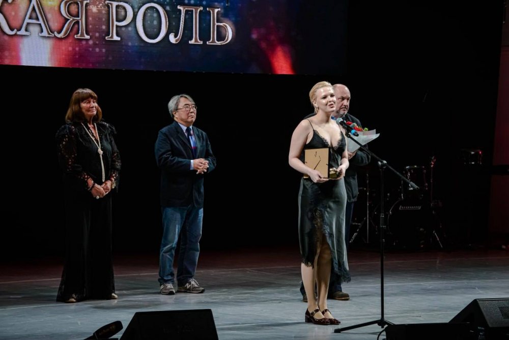 Приз губернатора Оренбургской области за «Лучший сценарий» им. Алексея Саморядова министр культуры Евгения Шевченко вручила фильму «Двое в одной жизни, не считая собаки», режиссер и сценарист Андрей Зайцев.