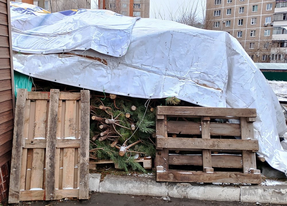 Как выяснил наш корреспондент, на самом деле в Оренбурге работают не все ёлочные базары. Например, возле ТРЦ «Новый мир» на улице Салмышской, 41, новогодние деревья сложены в кучу за киосками и накрыты белым тентом. Соответственно, ни продавцов, ни покупателей здесь нет.