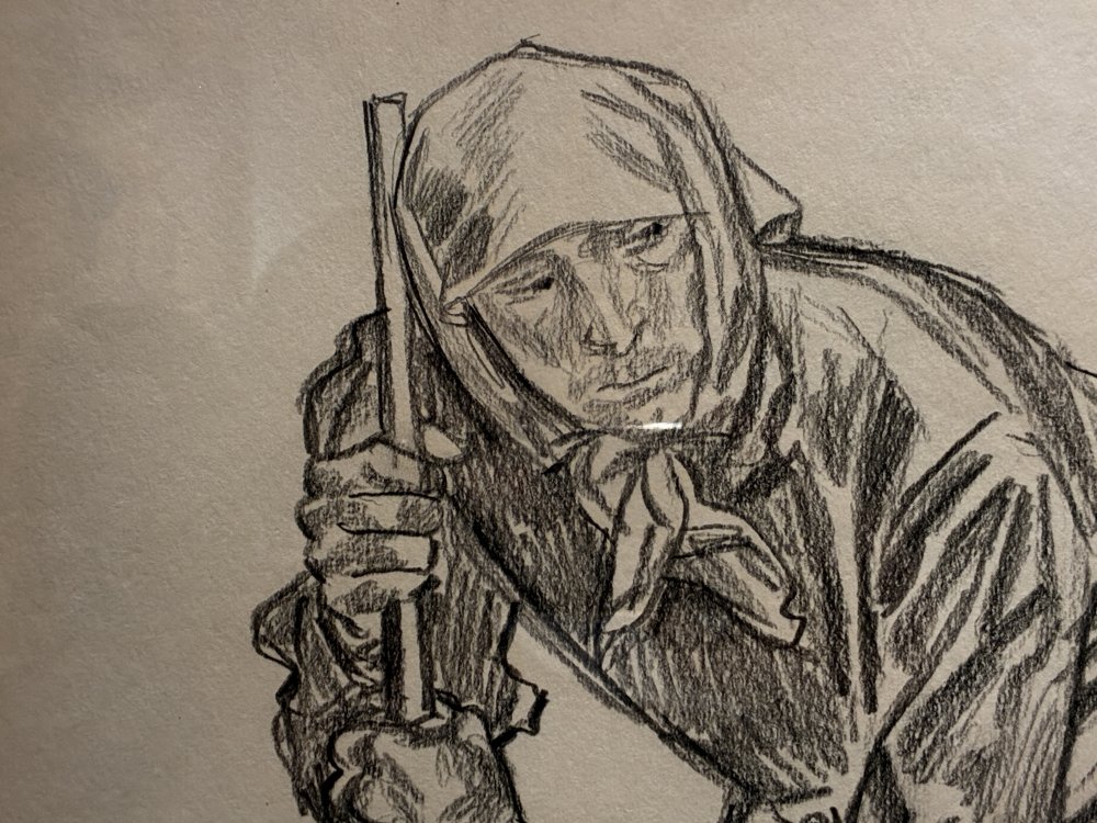 В общем, это выставка самого признанного и титулованного нашего художника. Собственно, картины Ерышева известны большинству оренбуржцев. Но сегодня впервые были выставлены его эскизы, и это очень интересно: видеть, как карандашный набросок меняется, обрастает деталями, набирает цвета — и становится частью монументального полотна.