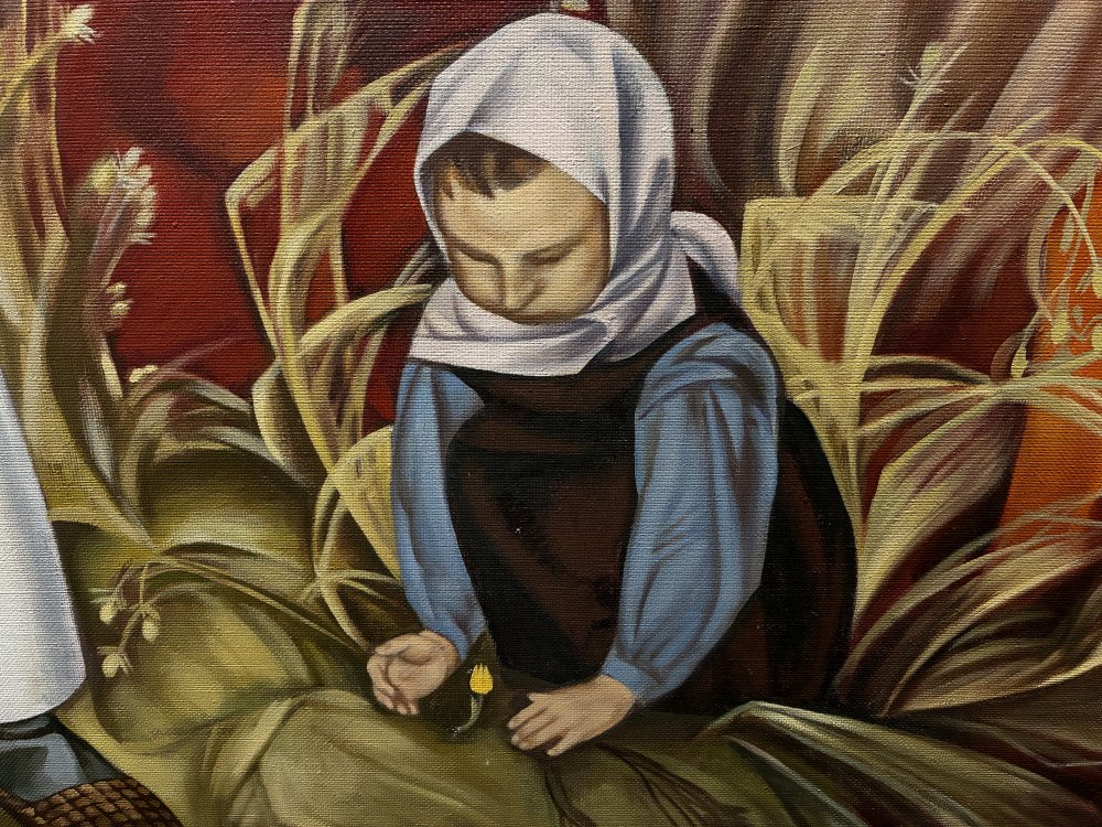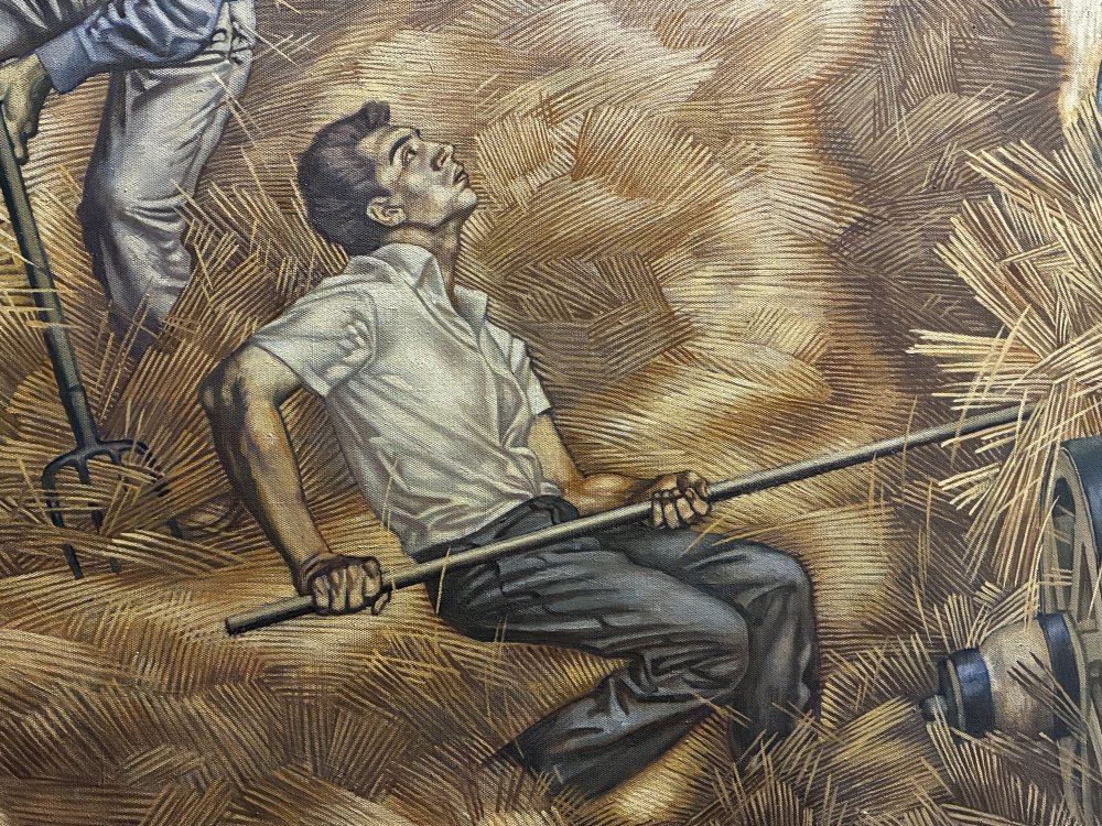 — Ерышев, конечно, представитель социального реализма. Его работы — вот, мы видим, «На своей земле» — они прославляют оренбургскую землю, Оренбург, Советский Союз… Конечно, это работы заказные. Но он действительно в это верил, и был честным художником: и по отношению к себе, и по отношению к зрителю.