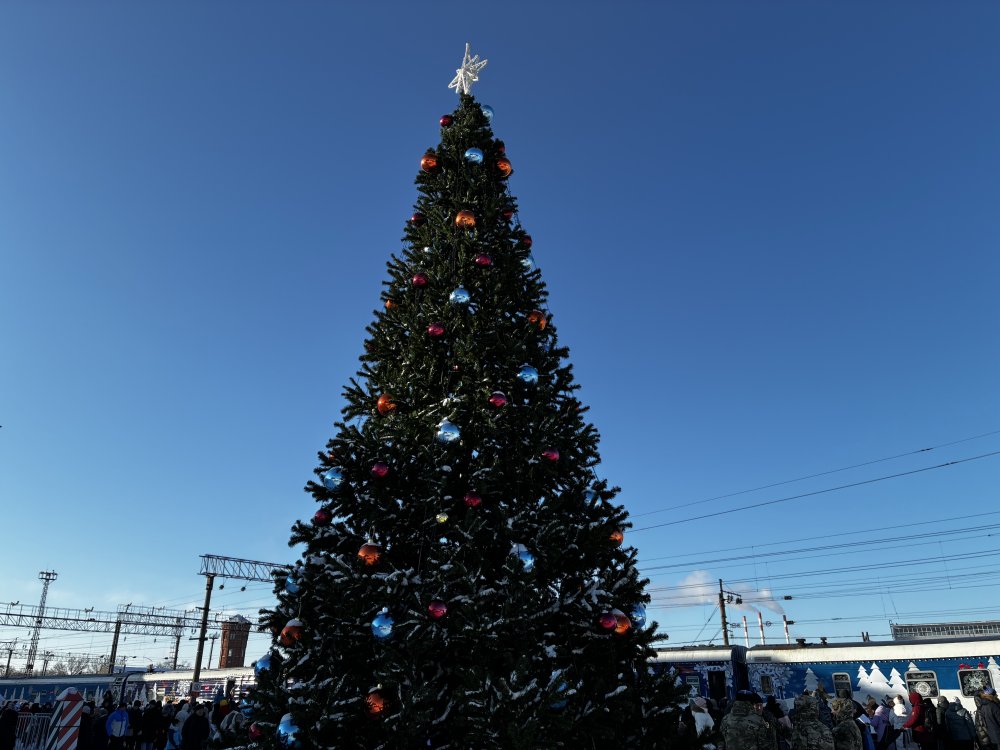 Приезжающих в Оренбург на перроне встречает такая елка. Фото 1743.ru