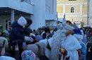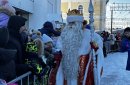 Самого главного волшебника встречали дети: несмотря на мороз, народу собралось очень много.
