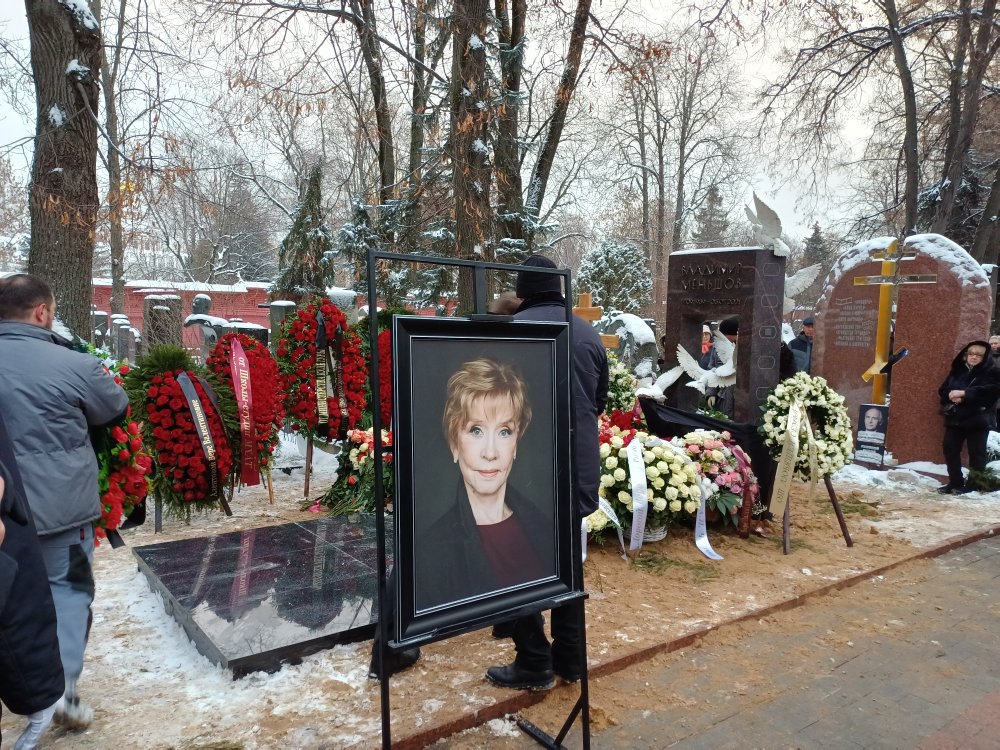 После прощания с актрисой в ее родном театре, ставшим для нее буквально вторым домом, сюда пришли ее коллеги, друзья. Естественно, была ее дочь Юлия Меньшова. Громких, прощальных слов не было. Цветы - от поклонников и близких. Венки — от администрации и президента России Владимира Путина, министерства культуры РФ, ВГИКа, театров, школы-студии МХАТ... И аплодисменты, которые провожали ее со сцены после спектаклей, после награждений. Теперь — после достойной жизни.