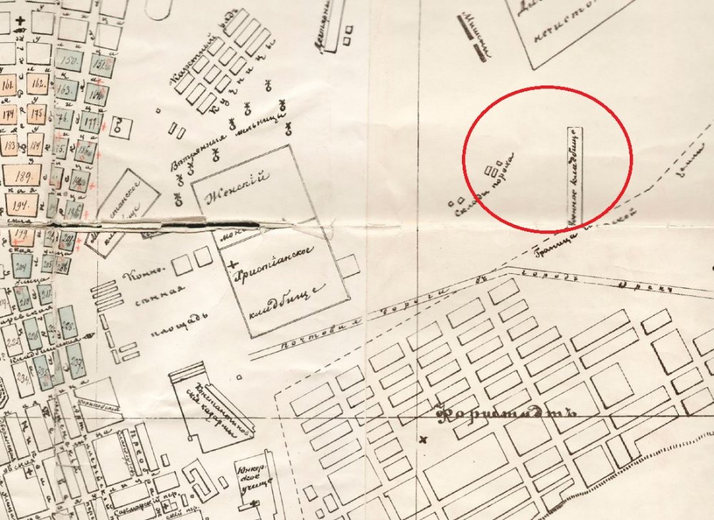 Что касается места совершения преступления. Христианское кладбище располагалось напротив женского монастыря, в районе областной филармонии и телевышки. Пороховые склады — плюс-минус в районе областной больницы имени Войнова. Свалка нечистот, те самые кучи навоза, — где-то в районе нынешних Парковской, Харьковской и Туркестанской. То есть произошло это примерно здесь: