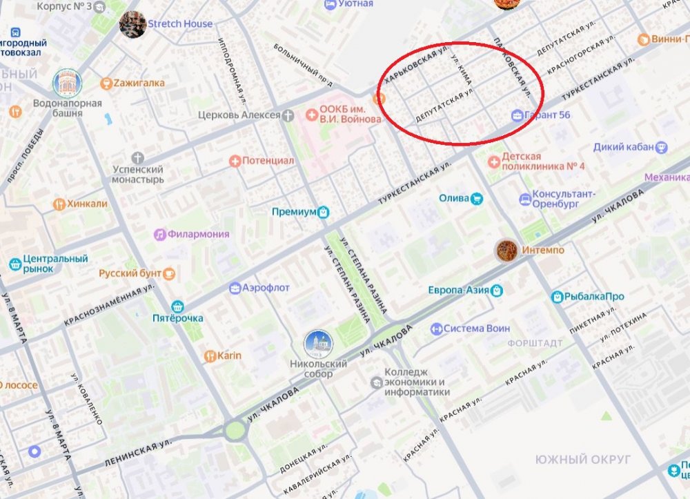 Архивные карты Оренбурга (1892 и 1916 годы) и современная Яндекс карта