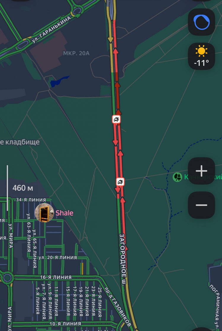 Из-за аварии на Загородном шоссе огромнейшая пробка.