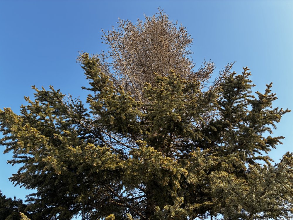 Голубая ель выглядит красиво... наполовину. Фото 1743.ru