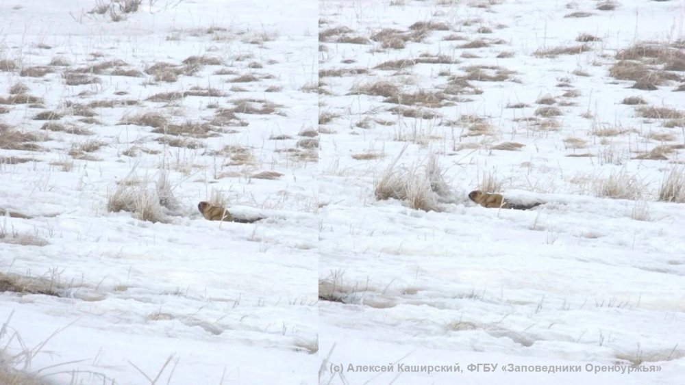 Старший государственный инспектор участка «Айтуарская степь» Алексей Каширский сумел запечатлеть долгожданный момент, когда сурок вылез из своей норы после длительной зимней спячки. Фото вышли не самыми чёткими — осторожный зверёк был далеко и не собирался позировать, рассказали в Объединенной дирекции государственных природных заповедников «Оренбургский» и «Шайтан-Тау».