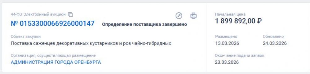 Выполнить контракт необходимо до 31 октября 2026 года. Где именно будут высажены цветы, не сообщается.